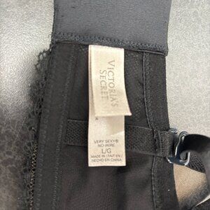 Victoria Secret No Wire Black Lace Rhinestone Boned Balconette Bra Sz L -Laced Floral print, adjustable straps.