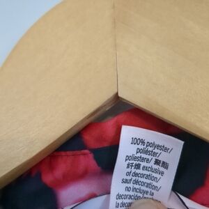 Stylish pajama set with vibrant red floral patterns on a black background. Perfect for a cozy night in.