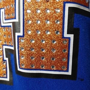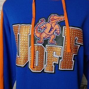 Vibrant orange and blue University of Florida mascot hoodie with rhinestone accents. In like-new condition.