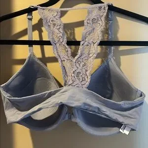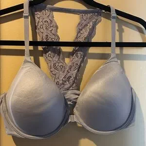 Lace racerback bra in a gray/purple color. Wired. Like new. Size 36D.