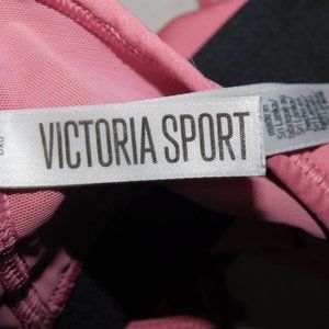 This womens Large Victoria Secret SPORT Pink Dusty Rose Criss Cross RacerBack Sports Bra is in Great clean condition. Bra is 86% Polyester - 14% Elastane - Machine washable.