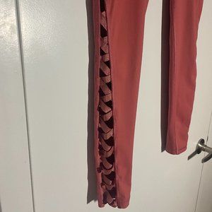Dark Coral Pink Workout Leggings / Tights with Sparkly CrossOver Side Detail on Both Legs