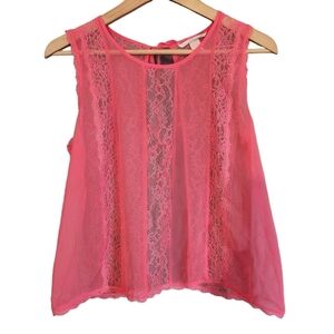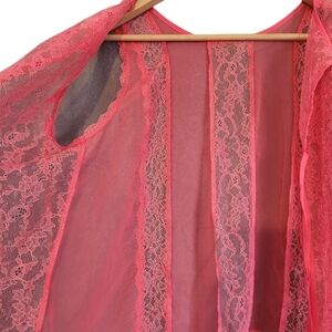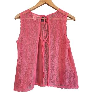 Victoria Secret, pink lace, open back, lingerie top. sheer fabric with lace panels, has ties on the back. Super cute, comfortable and in great condition