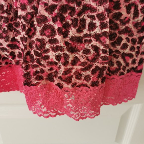 Victoria Secret pink leopard lingerie slip S w pink strap and pink lacy bottom