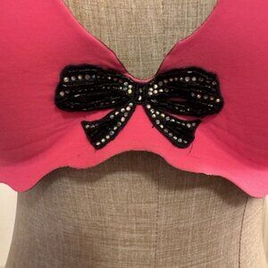 beautiful hot pink V.S. bra hot pink push up style with black bow and rhinestones size 38C