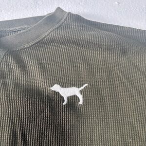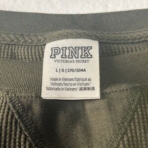 Victoria Secret’s PINK Women's Waffle Long Sleeve Dark Green Cropped Top Large