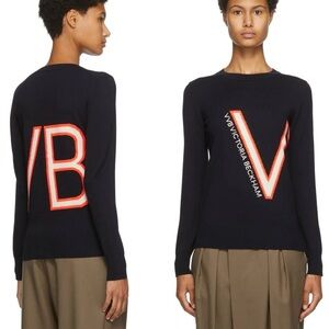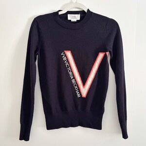 Victoria Victoria Beckham Navy Wool Logo Sweater Size S