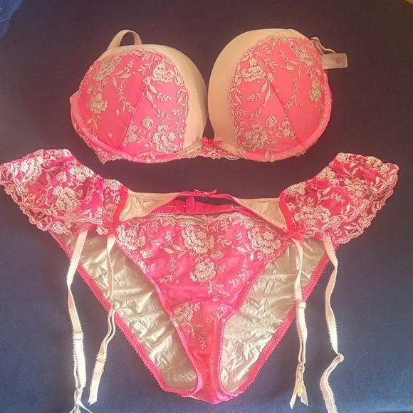 Victoria secret Pink Floral Embroidered Bra and Garter Brief Set