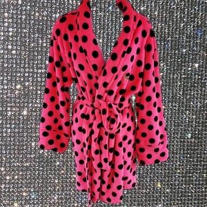 Victoria secret pink robe polka dot neon pink black gold dog emblem fuzzy fleece
