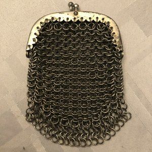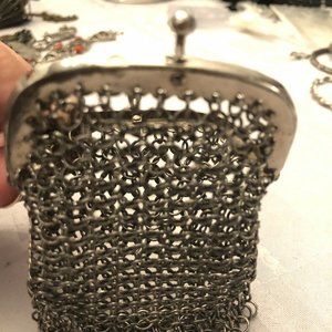 A Small Victorian Antique silver tone Coin Purse, Chain Mesh Link.