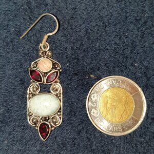 Victorian Genuine NATURAL Garnet, Rhodolite & Variscite 925 Silver Earrings