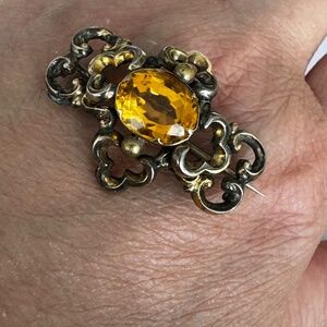 Victorian Gold Gilded Citrine Brooch Pin
