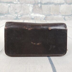 This lovely little coin purse is made of leather and has a metal clasp closure. There is a front pocket which snaps closed.