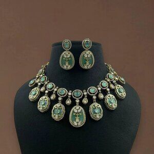 Victorian Polish Moissanite Polki Holdali Necklace Set