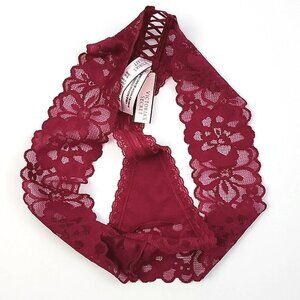 Victoria's Secret 2 Pairs Floral Lace Thong String Panties Red Pink Size M
