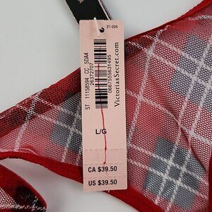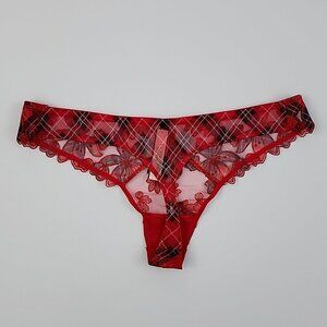 New with tags, Victoria's Secret Very Sexy thong string red tartan butterfly lace panty bottom and another Victoria's Secret Incredible red lace thong string panty, both size Large.