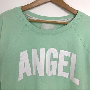 A cozy and playful Victoria’s Secret sweatshirt in a fresh mint green shade. Featuring a bold ANGEL graphic across the front, this relaxed-fit pullover has a soft cotton-blend fleece interior for ultimate comfort. Designed with raglan sleeves, ribbed cuffs, and a classic crew neckline, this sweatshirt is perfect for lounging or casual streetwear styling.