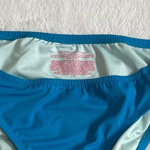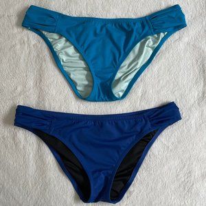 Two gently used bikini bottoms in two shades of blue. Slight pelling on the backside of the lighter-coloured bottom, but otherwise in great condition.