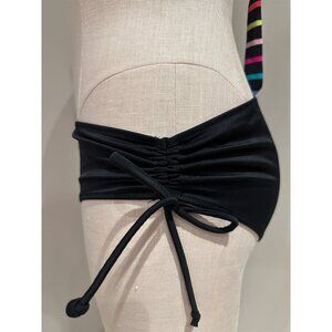 • Low rise booty short that ties and ruches on sides to give it more of a higher cut