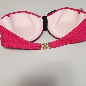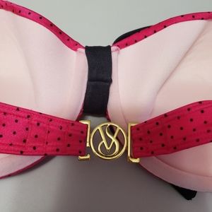Victoria's Secret bikini top, with black polka dots and bow detailing. Size 34C #133