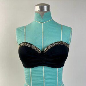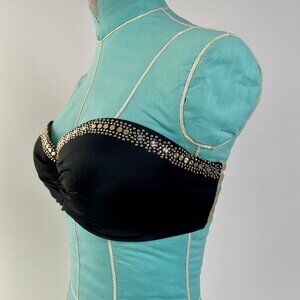 Victoria's Secret Black Bandeau Style Bikini With Gold Beading, Size S/34D