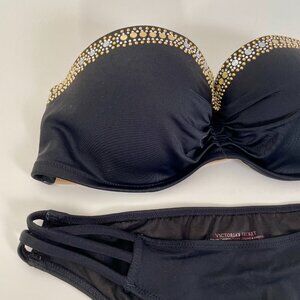 Victoria's Secret Black Bandeau Style Bikini With Gold Beading