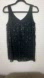 Victoria’s Secret black tank top camisole with round black sequins. Has a slit on each site with a bow on top of the slit. Most of the top is sheer.