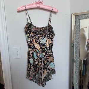Elegant black top with colorful floral design. Perfect for stylish outings.
