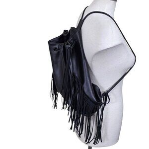 Victorias Secret Black Hobo Backpack Fashion Show Bag Fringe Drawstring Purse