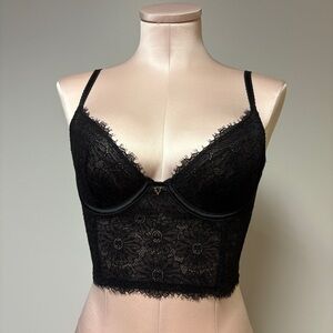 Victoria's Secret Black Lace Longline Bralette 32D
