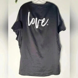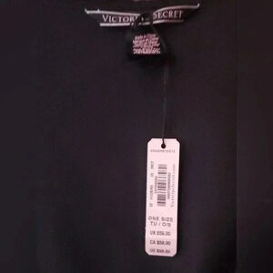 Victoria's Secret Black "Love" Lounge Robe front Tie Ruffle Sleeve Sati…