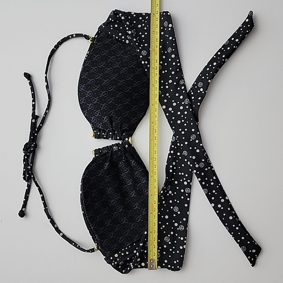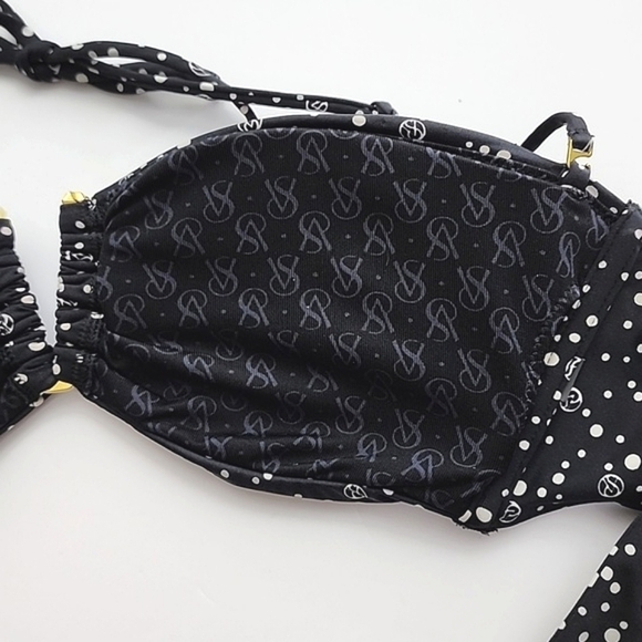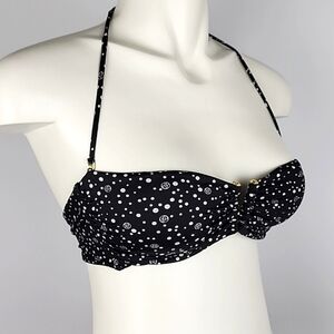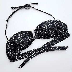 Excellent pre-owned condition, Victoria's Secret bikini convertible halter bandeau swim top white polka dots on black with removable padded cups. Size Small. Comes with extra straps.