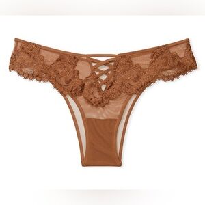Victoria's Secret Boho Floral Embroidery Brazilian Panty Brown