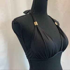 Victoria’s Secret Bombshell black bikini top Sz S ruched gold hardware🇨🇦