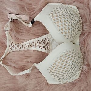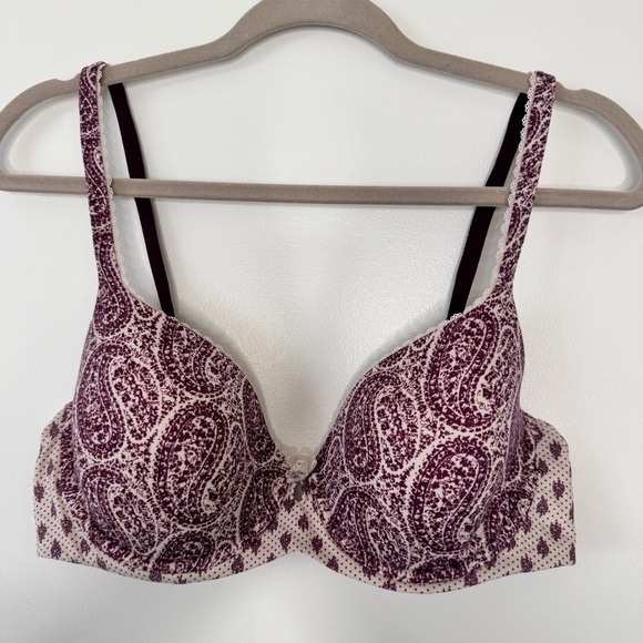 Victoria's Secret Bra Body By Victoria Lined Demi Cream Purple Paisley Sz 36D