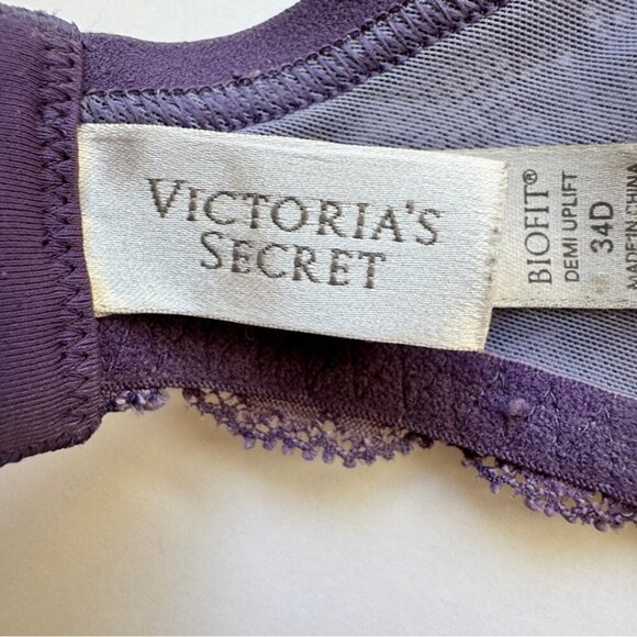 Victoria's Secret Bra Demi Uplift Biofit Purple Lavender Lace Soft Comfy Sz 34D