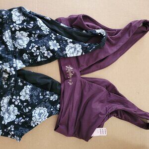 Small, Victoria's Secret Bralettes, one all purple, second foral black and white, condition new, spandex stretch