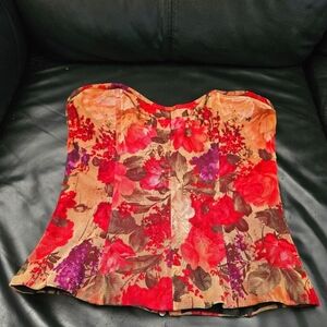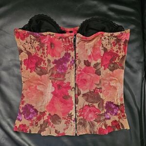 Victoria's Secret Corset Floral Strapless Top Stretchy Padded Full Zip Sz Small