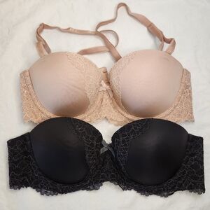 Black & Nude Super Soft Lined Strapless Multi-Way Under Wire Bras with scallop Lace trim and Lacey front detail, 'Dream Angels' by Victoria's Secret.