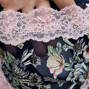 Victoria's Secret Dream Angels Cheekini Tanga Pink Blue Lace Floral Panty Sz L