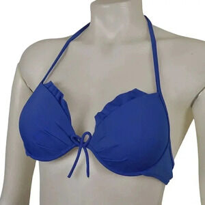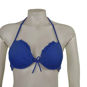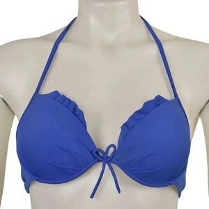 Victoria’s Secret Fabulous Blue Padded Push Up Bikini Top Swim Ruffles Size 32B