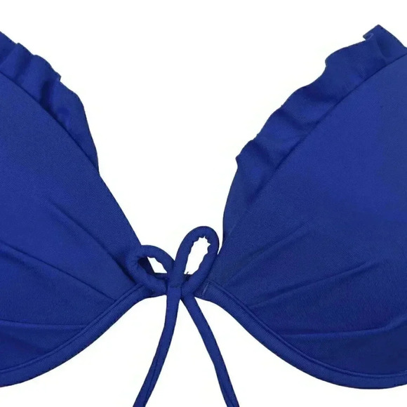 Victoria’s Secret Fabulous Blue Padded Push Up Bikini Top Swim Ruffles Size 32B