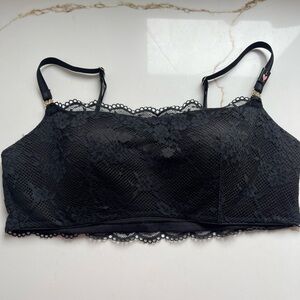 Black unlined demi in 32dd. (Model photo is just a reference for the cut. It's the same bra but with different gore logo)