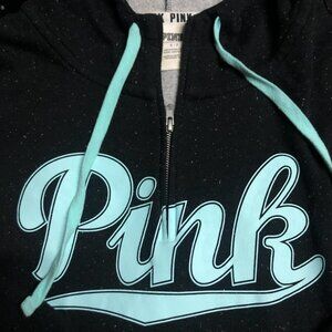 •2010s VICTORIA'S SECRET PINK galaxy-like icy blue black quarter-zip oversized hoodie 🪐⭐️