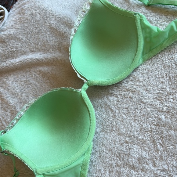 Victoria’s Secret Green Lace Push-Up Bra 36C | Floral Embroidery Y2K Lingerie