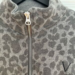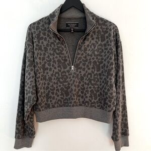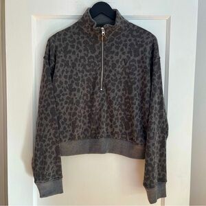 Victoria’s Secret Grey cropped sweatshirt top, 1/2 zip front, animal print Large