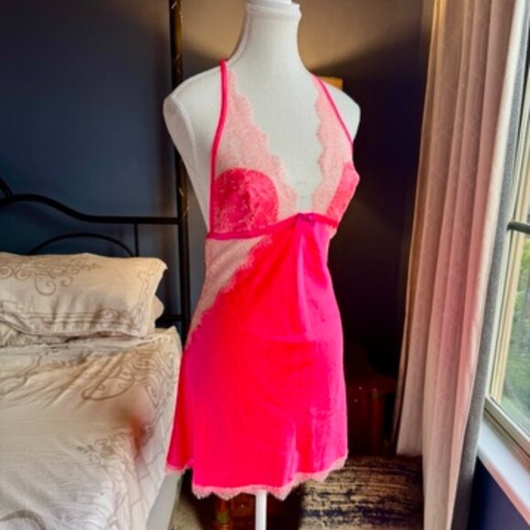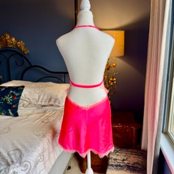Victoria's Secret Hot Pink Lace Short Halter Nightie Negligee Slip