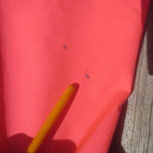Victoria's Secret Hot Pink Light Windbreaker Jacket with Mesh Chest Accent and Hood - Size Medium. In very good to near excellent condition with no damages. Washed, cleaned and odor free. There are 2 pencil point dot stain seen on the back of the jacket on the lower right side area as pointed out in the photos. The collar label has been removed. Overall, this is quite the fashionable jacket combining function with sex appeal.
