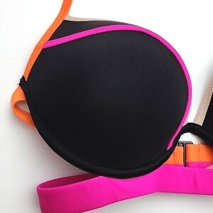 Excellent pre-owned condition, Victoria's Secret Halter String Bikini Top Push Up Neon Orange Pink, size 36D.