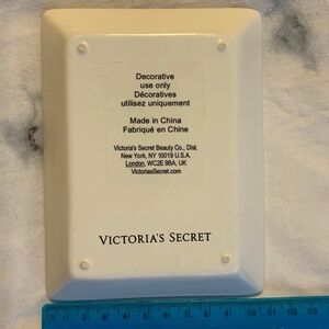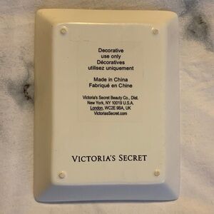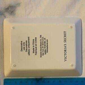 Like-new condition Victoria's Secret jewelry tray. The tray has a gold trim with black and white stripes. Perfect for displaying jewelry or as a decor piece on its own. It is 14 cm in length and 10.5 cm wide, see photos.